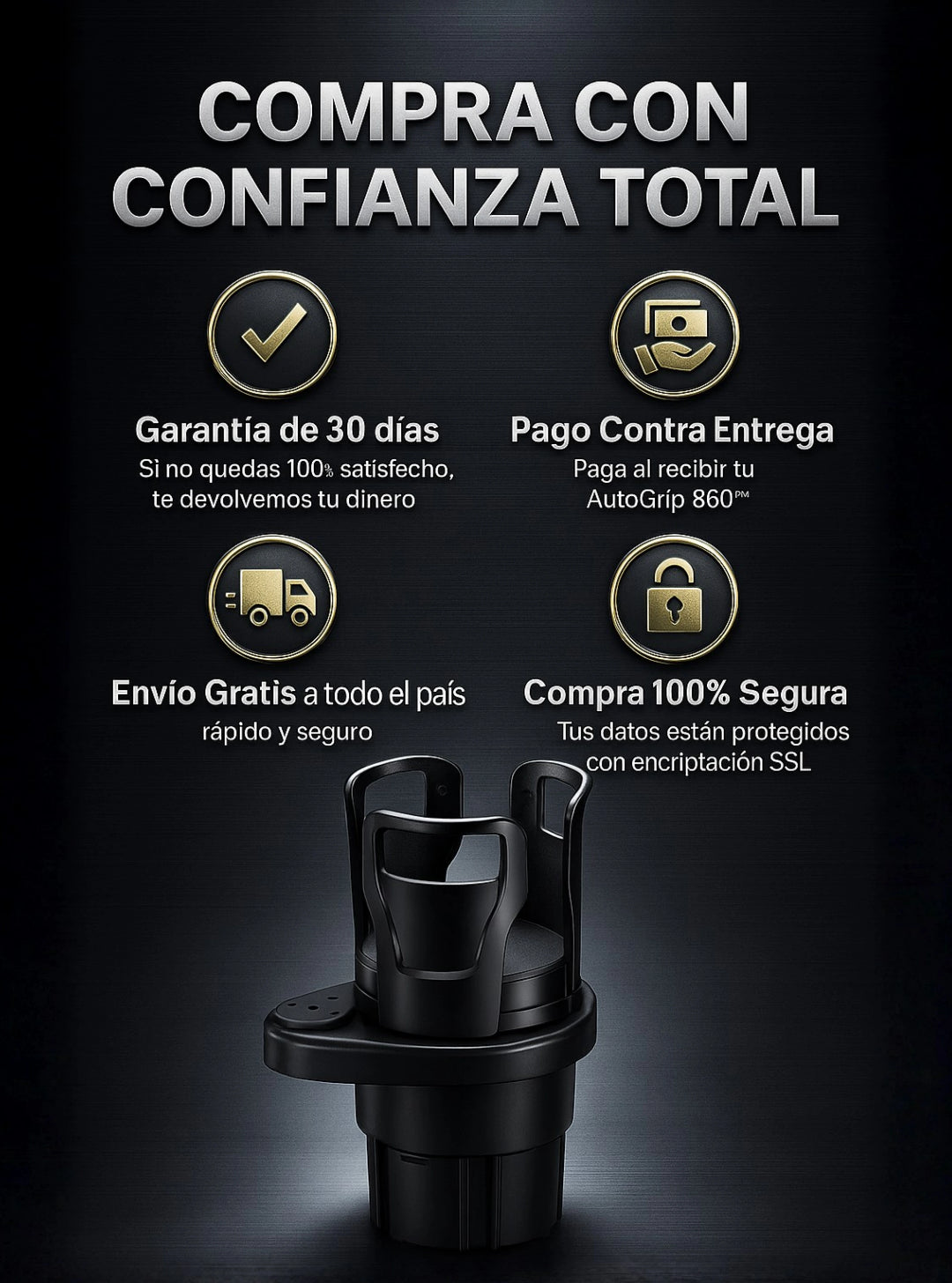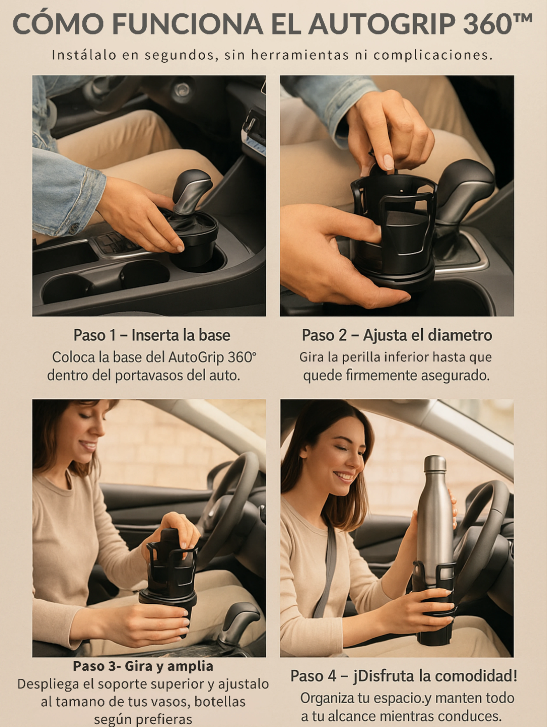 Sí, el AutoGrip 360 Portavasos Premium se adapta a la mayoría de portavasos estándar en autos, camionetas y SUV.
