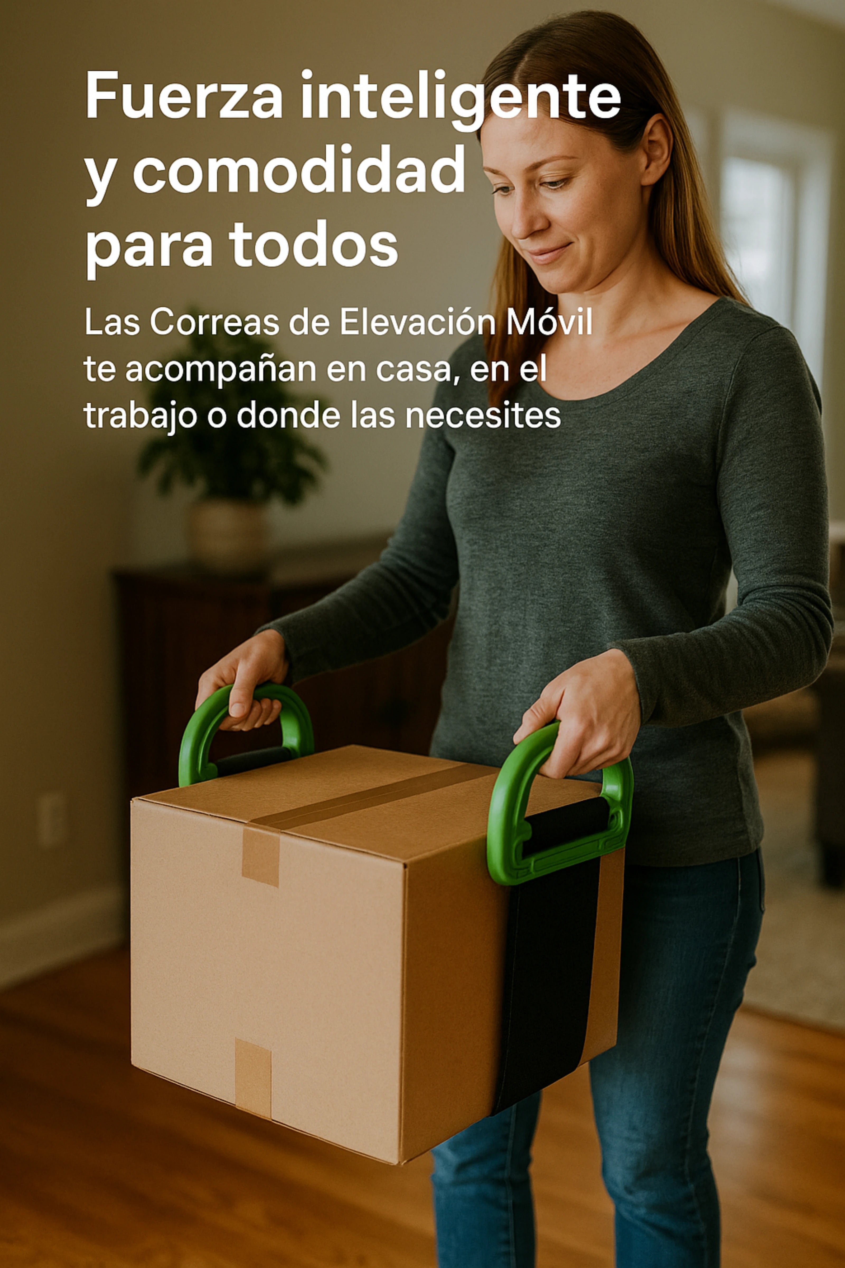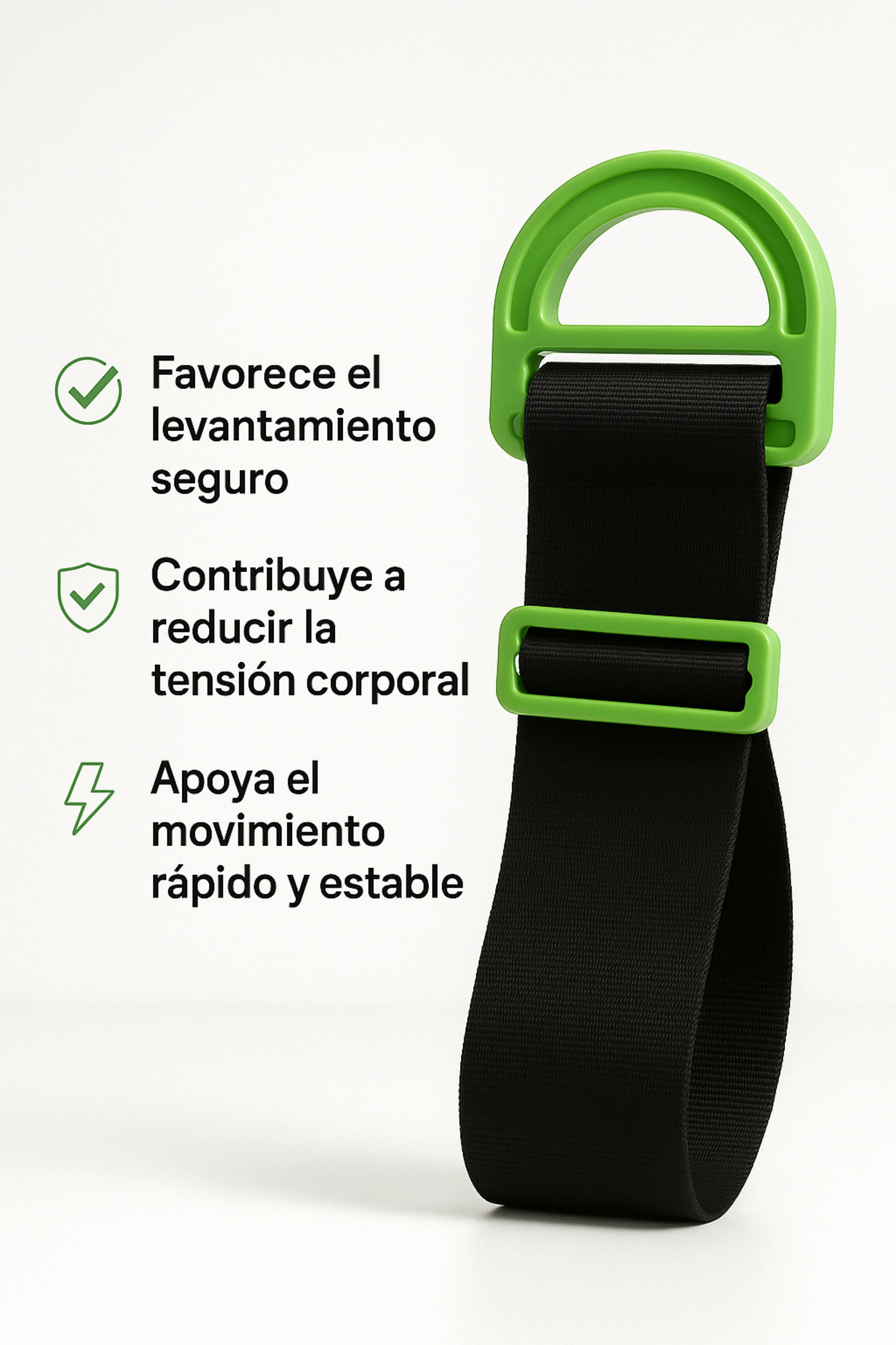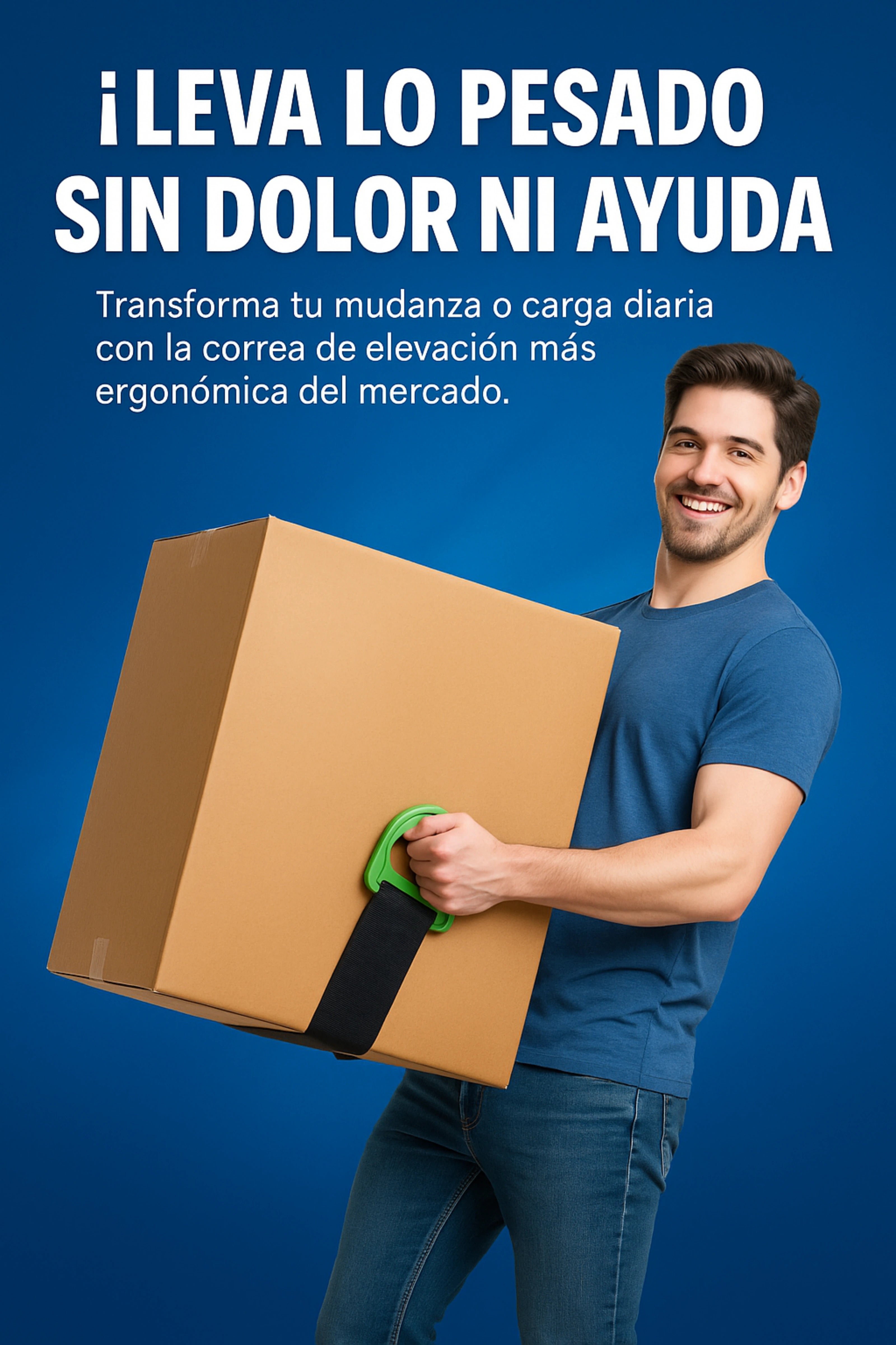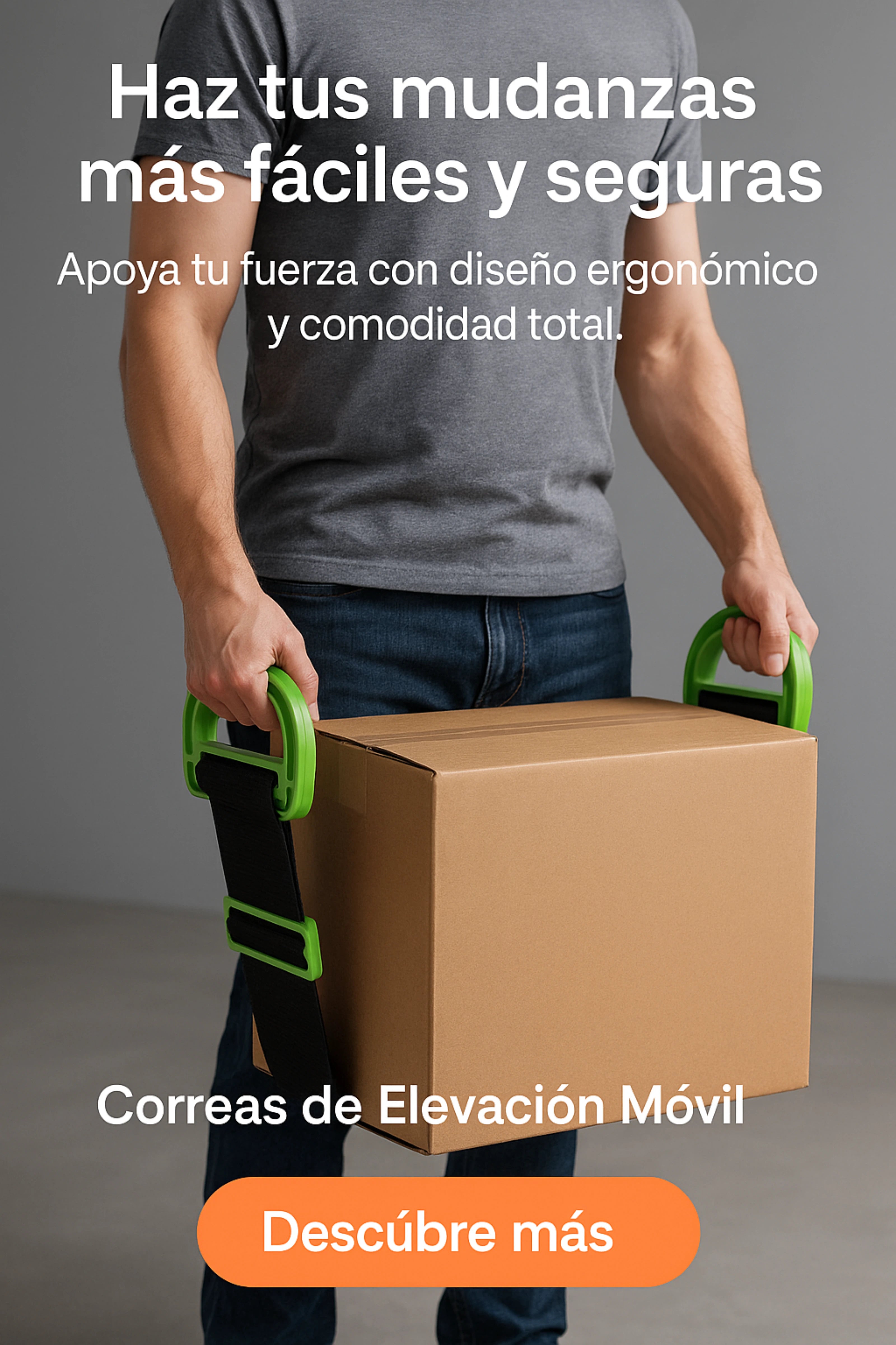 Las correas de elevación móvil están fabricadas con una cinta de alta resistencia que soporta hasta 300 kg de peso de manera segura. Son ideales para mover lavadoras, neveras, muebles y cajas grandes sin riesgo de ruptura.