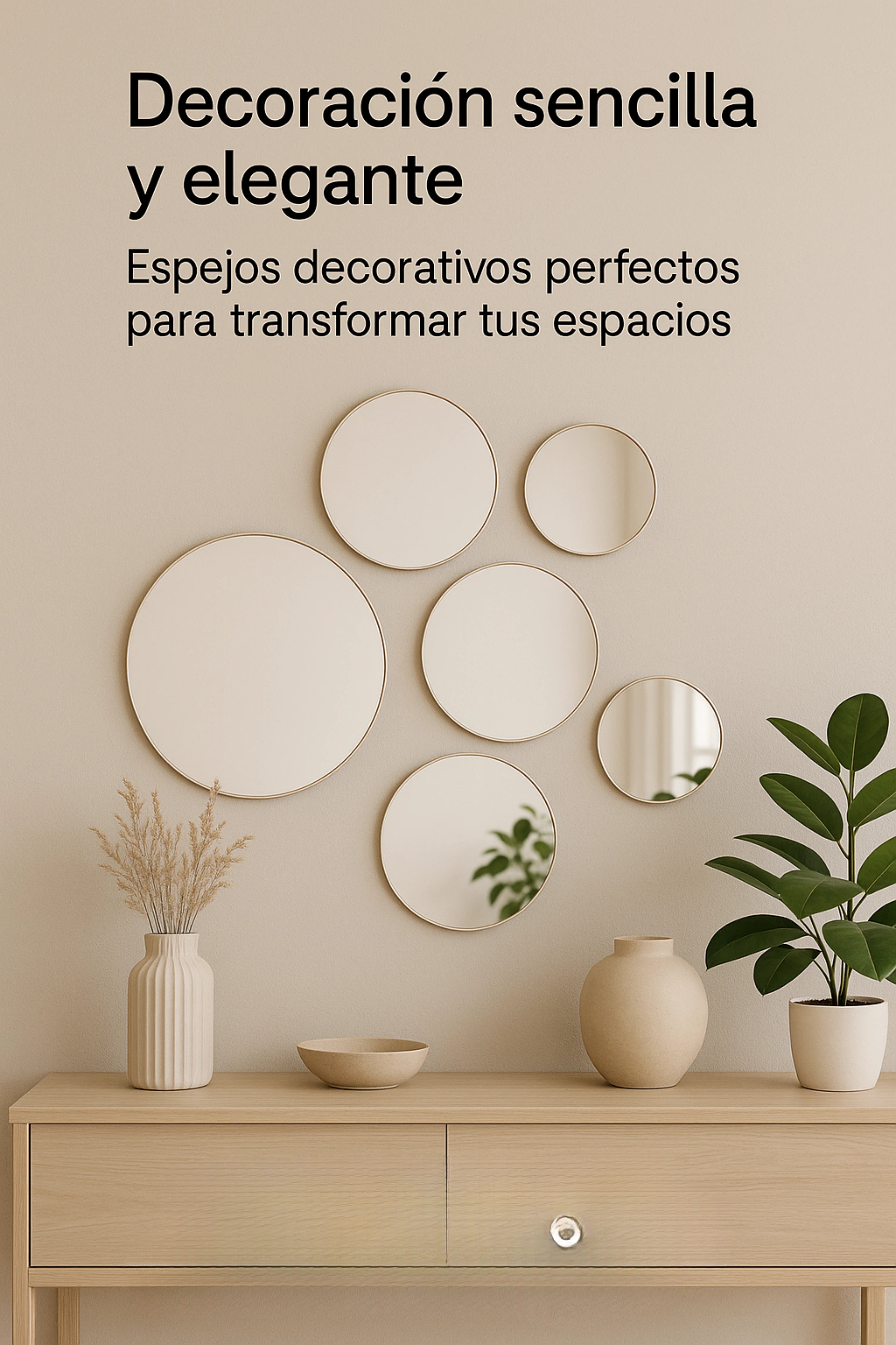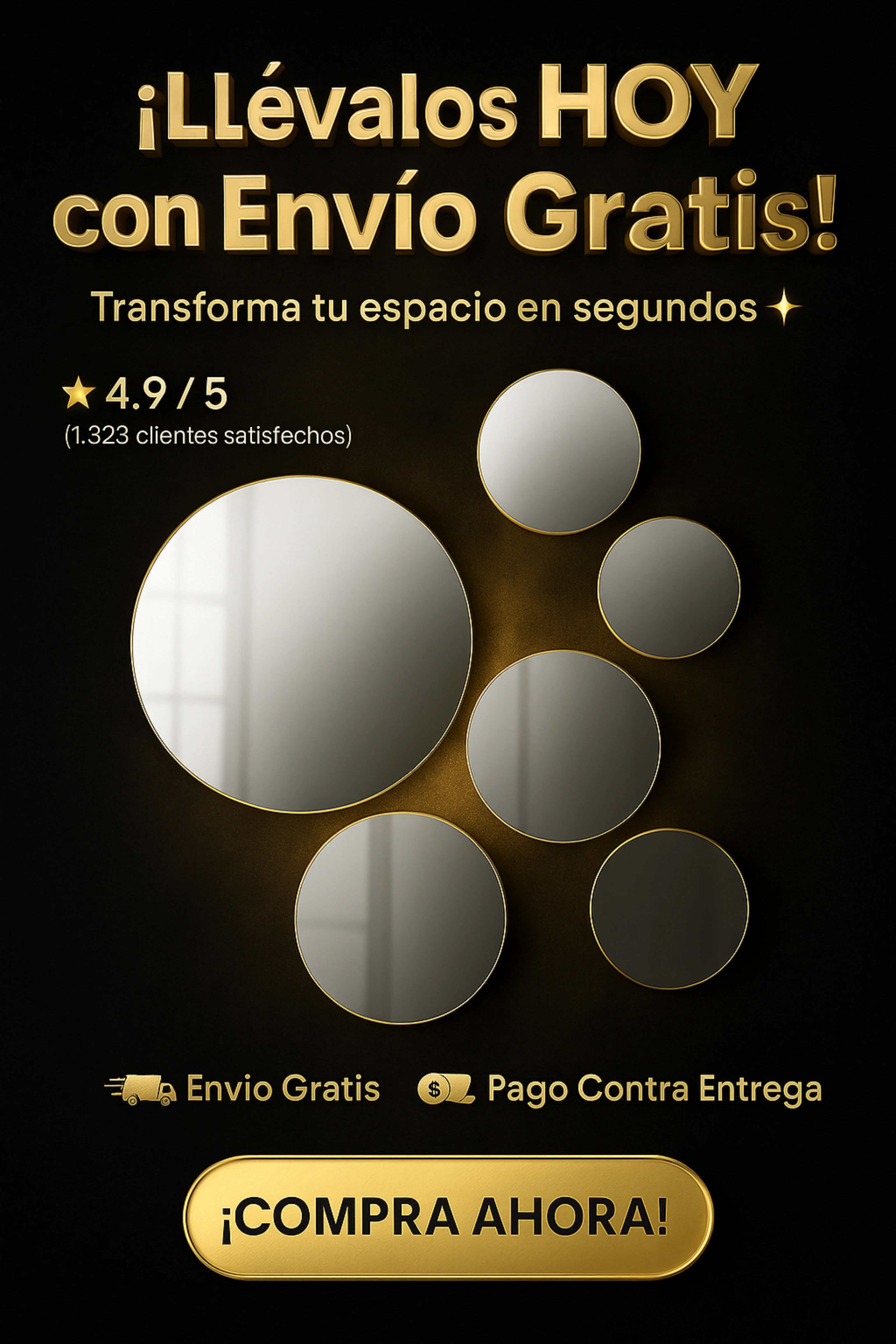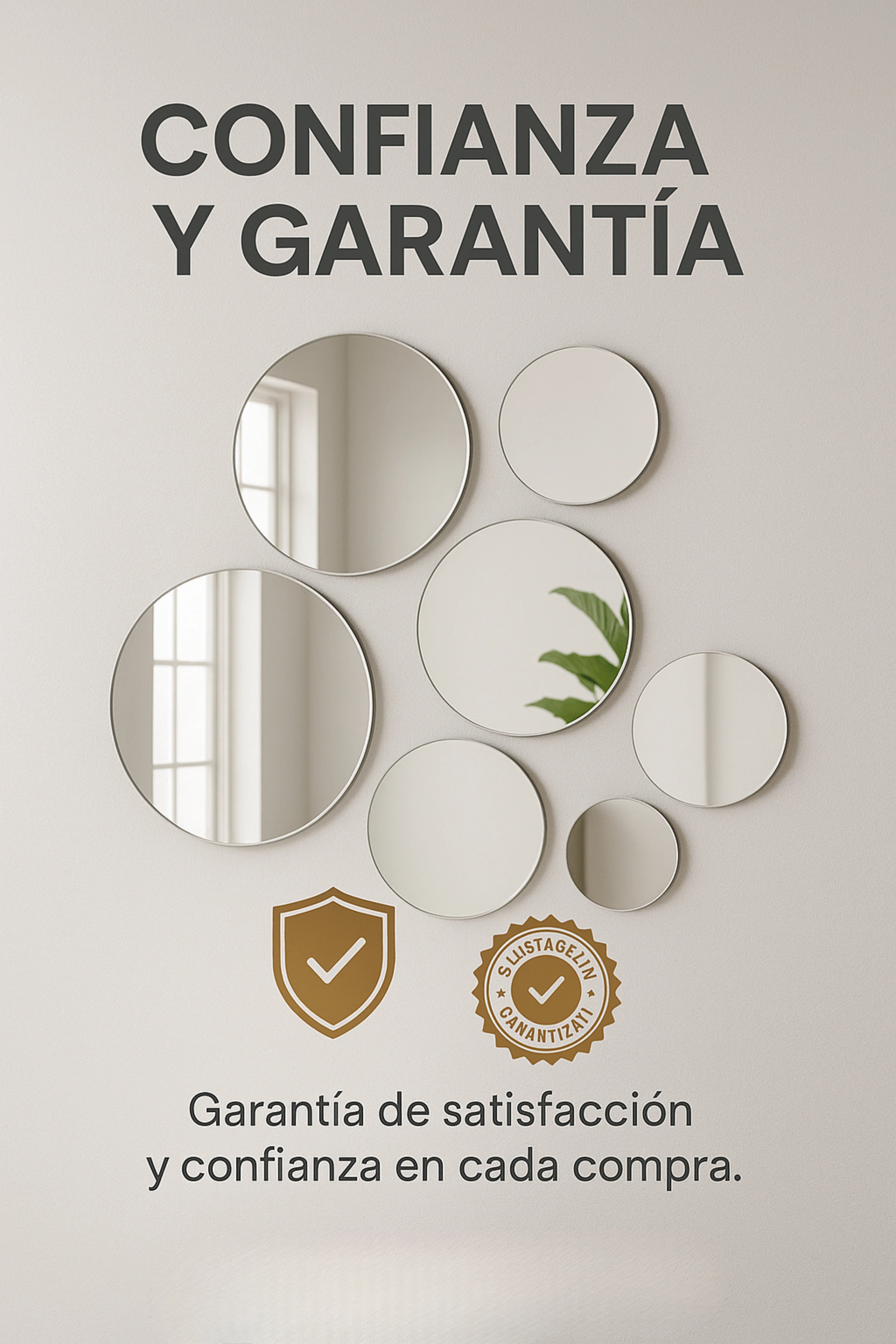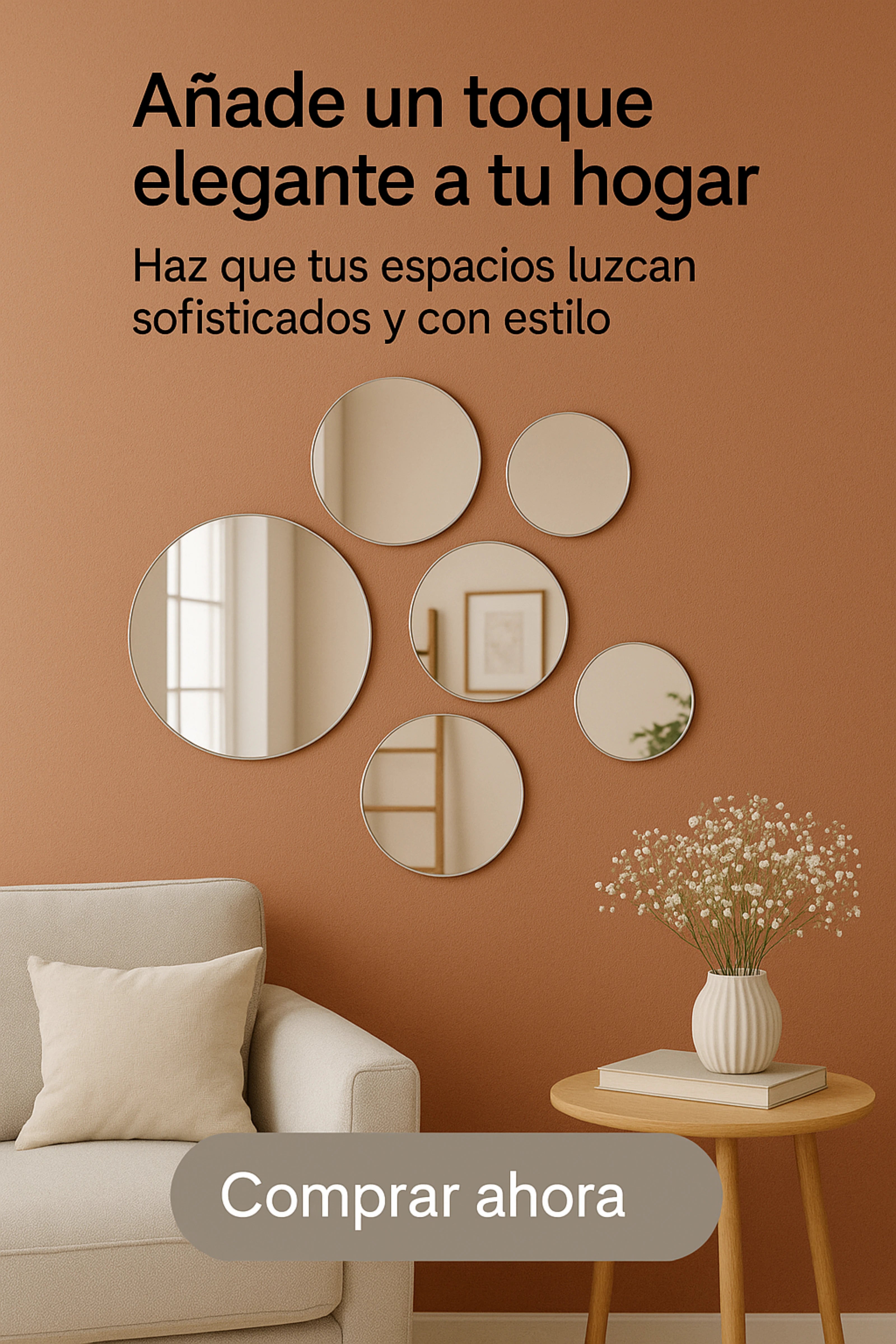 Nuestros espejos incluyen adhesivos de alta resistencia, fáciles de aplicar sobre superficies lisas. Solo limpia la pared, retira el protector y colócalos con la distribución que prefieras. Sin herramientas ni perforaciones.